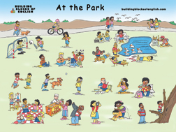 Use the “At the Park” poster to generate more conversation in your class.  The poster is in full color and includes suggestions for games and activities. The poster is shipped slightly folded in a manila envelope.